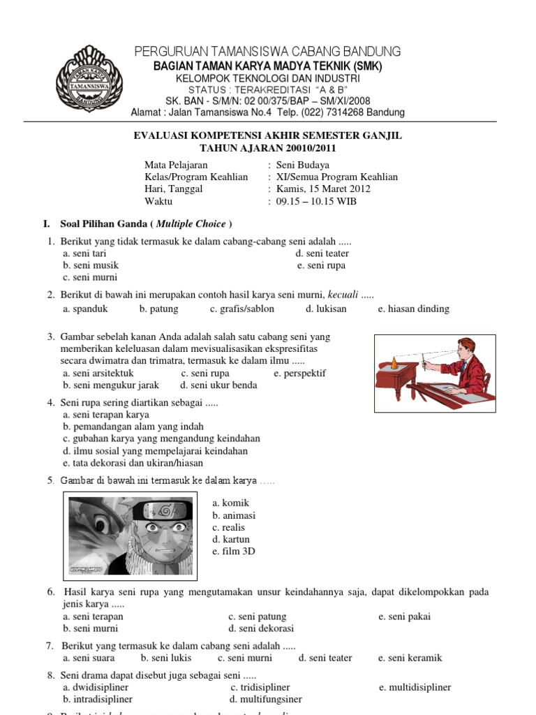 Kumpulan Soal Seni Budaya Smp Kelas 8 Semester Ganjil Didno76 Com